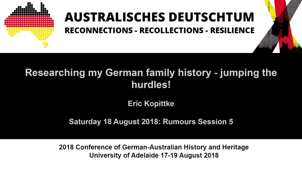 Video of the presentation by Eric Kopittke from the 2018 German-Australian History and Heritage Conference in Adelaide.